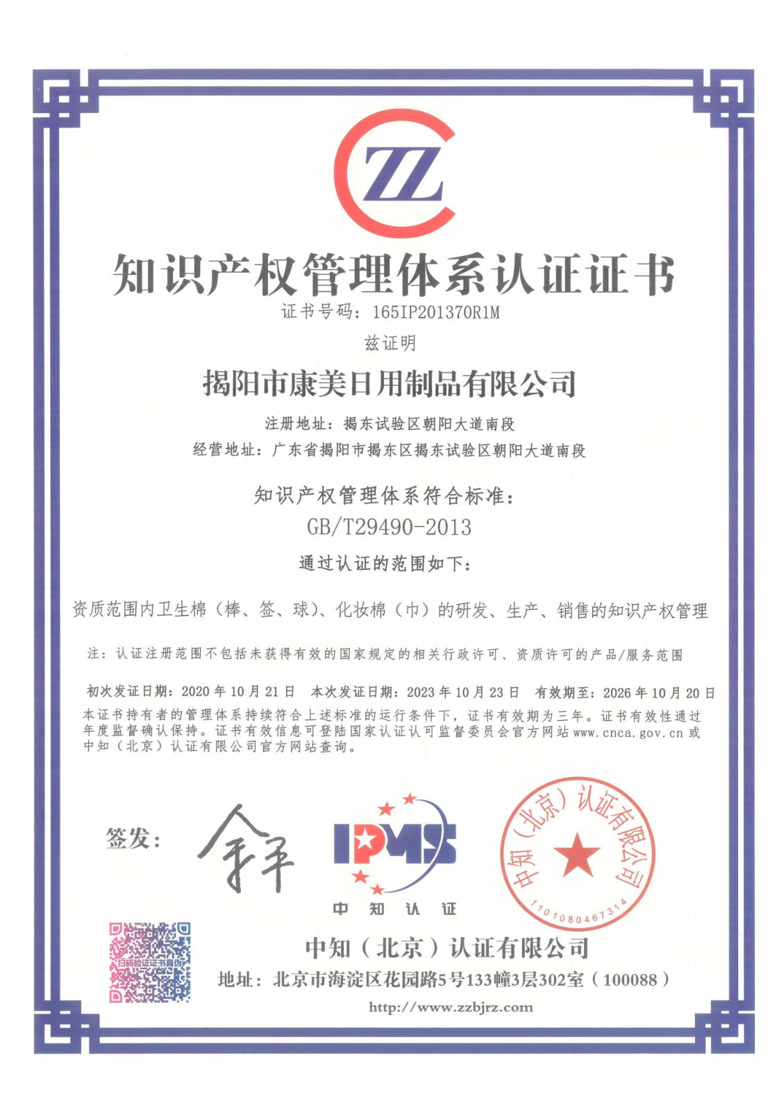 知識產(chǎn)權(quán)管理體系認(rèn)證書
